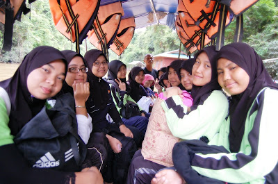 then,next day pulak kami naik satu bot then menyusur ( ayat,untuk pelajar cemerlang Bahasa Melayu SPM 2009 ) sepanjang SUNGAI PAHANG,and kalau pergi national park,orang panggil rapid shooting ok?jangan lah pergi jumpa ranger cakap,ala nak naik yang bot-bot tue,memang tak lah,ok?and gambar-gambar ni adalah keexcitedan kami before that boat trip..hee~:)